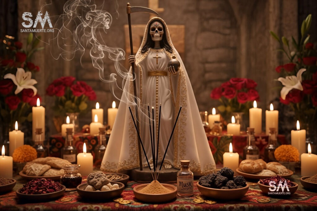 🔮 Hechizo Diario – Santa Muerte 🌗 **HECHIZO PODEROSO: Protección Espiritual** En esta fase de cuarto menguante, cuando la luz se recoge y la sombra crece, invoca la sagrada protección de la Santa Muerte. Toma una vela azul, símbolo de…